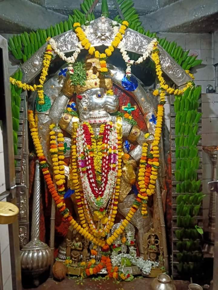 Shri Yalguresh stands in the village of Yalgur on the order of Shri Rama. Shri Yalguresh is aptly called so because He, the Lord Hanuman, belongs to and is worshiped by the seven villages. || Om Shree Sapta Gramadhidevo, Om Bhootsarvesham Jagataam Patih Hanumans Swayam Vyakto Yato, Ramagyah Stithah ||